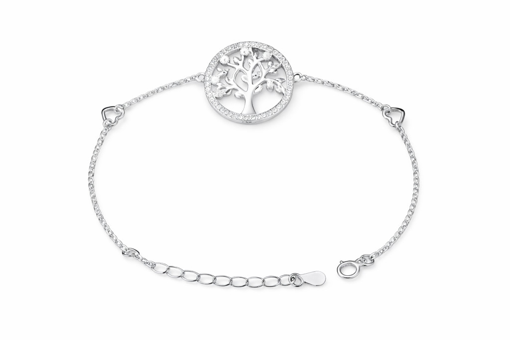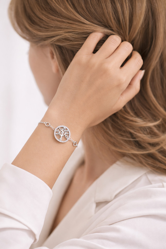 Finom anker szemekből álló ezüst karlánc, középen életfa medállal.