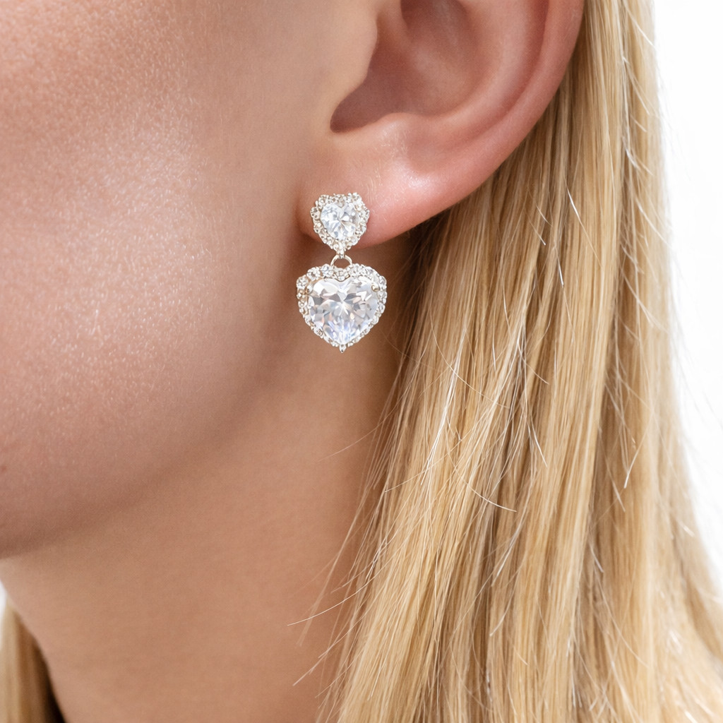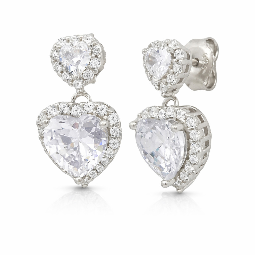 Dupla Szív ezüst fülbevaló – cirkóniával