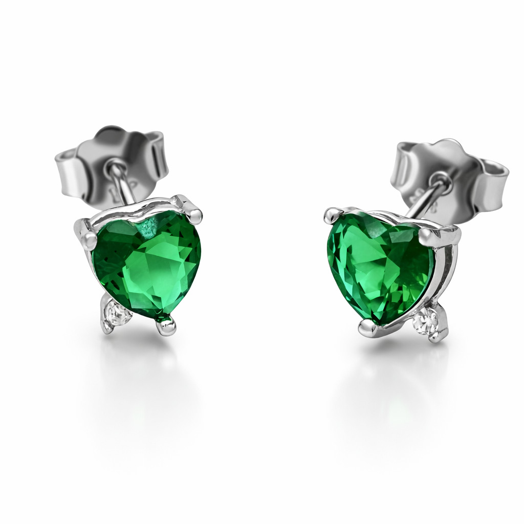 Mini zöld szív ezüst fülbevaló – cirkónia